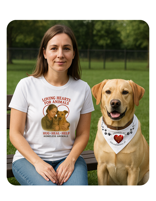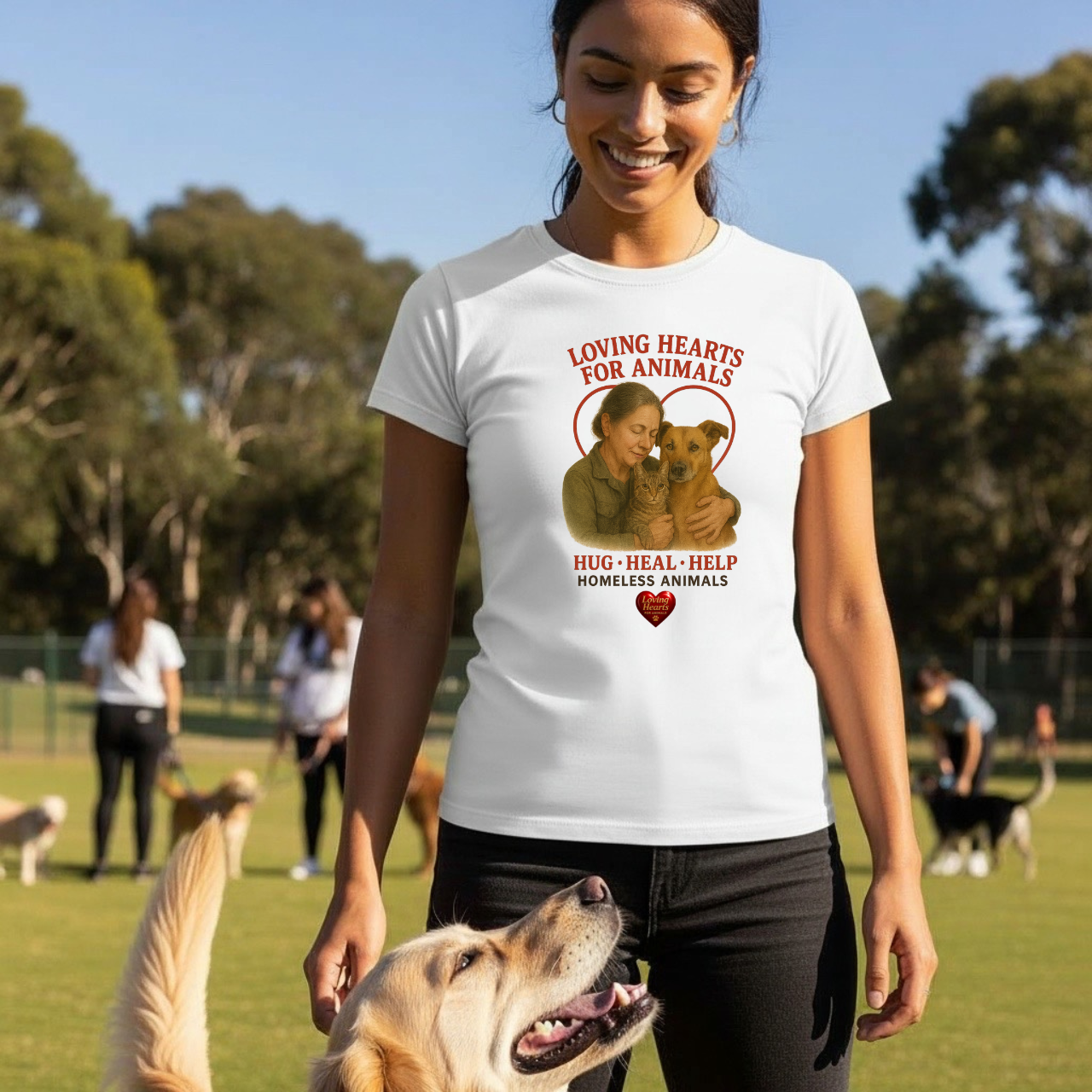 The Hug Heal Help Homeless Animals tee empowers you to make a difference—supporting rescues nationwide."Hug Heal-Help - Giving a voice to those that have none"